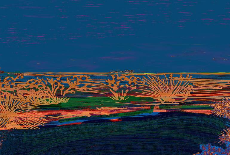 Vivid mixed media on Velvet with acrylic paint touches. Mixed media was created using photography, original painted artwork and digital illustration. Exhibit_ Artwork created for the Joshua Tree National Park “Where two Deserts Meet” Exhibition Inspiration_ This Artwork captures a view of the des...