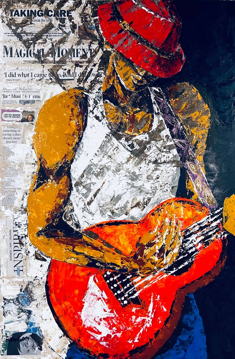 I visited Mardi Gras for the first time this year and the music in New Orleans had me thinking about how fundamental music is to making magic and healing. This mixed media has print incorporated from newspaper print of the 2023 Sunday Mardi Gras weekend, with words and headlines that speak to the e...