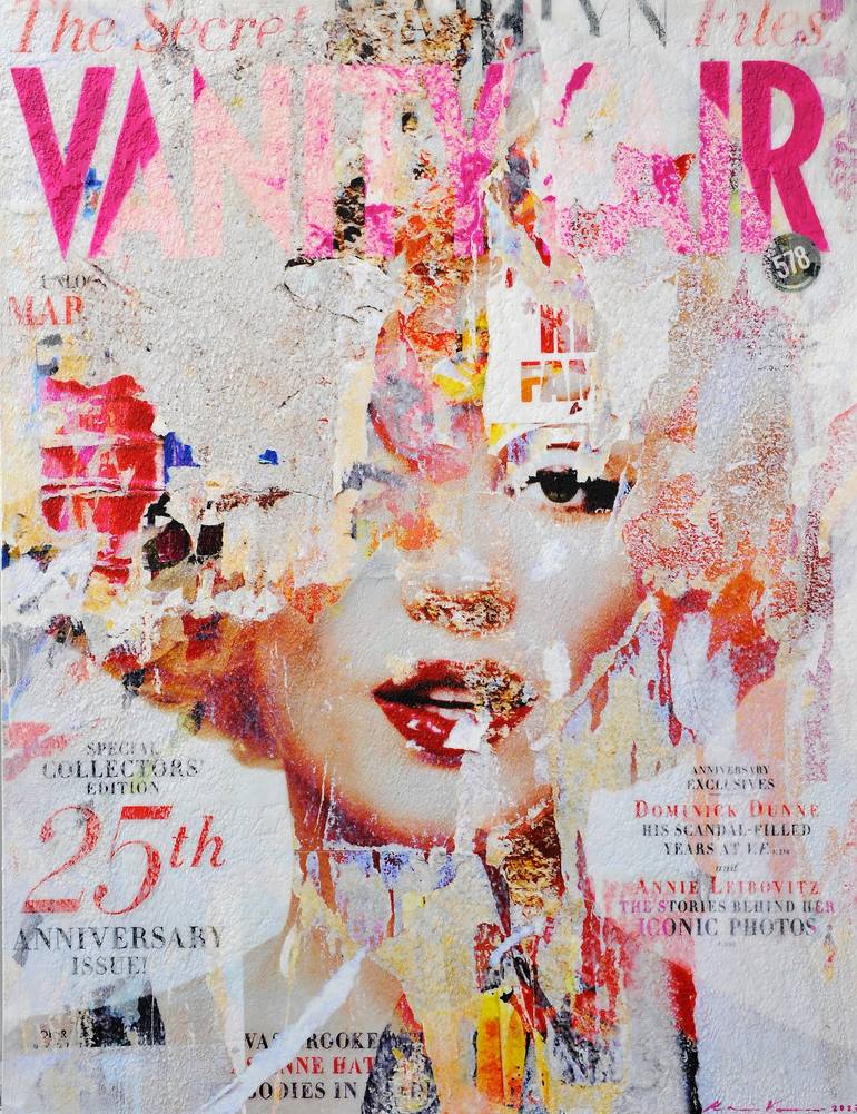 Karin Vermeer is an independent artist who has lived in Rotterdam since 1990. Born in Tilburg in 1970, she developed a passion for fashion during her school years, ultimately leading her to the Willem de Kooning Academy in Rotterdam. There, she earned her degree in Illustration in 1994. After working as a freelance illustrator and decorator for several years, Karin wanted to reinvent herself as an independent artist, channelling her creativity into vibrant paintings and captivating murals. Her artistic journey began with commissioned pieces for interior stores and hotels. Over time, she ventured into pop art and portrait painting, creating digital designs that would be transformed into physical paintings. This innovative blend marked the birth of her early mixed media works and laid the foundation for her distinctive current style. Fashion and female portraits have always been central to Karin’s artistic pursuits. Her fascination with fashion magazines as a child fueled her creative vision, as she was enchanted by striking images of models while also disturbed by the unrealistic alterations often applied. This complex relationship inspired her to explore the blending of photography with digital and manual techniques, allowing her to create a unique dialogue between perception and reality. Karin’s artwork emerges from this digital fusion, creating new visual experiences. Initially recognised for her compelling portraits, she has since expanded her oeuvre to include abstract works and landscapes, all crafted using similar techniques. Her portraits are produced in limited editions of no more than 25 pieces, while her abstract and landscape paintings are one-of-a-kind, showcasing intricate detail and depth. She always starts with a digital design, and once they are finalised, she carefully prints and adheres them to canvas, using the print as an underpainting. Karin then enhances these foundations with thick layers of gel medium, applying rich colours with acrylics, oil paints, oil bars, and chrome paints. Her choice of tools—brushes, sponges, palette knives, rollers, and even her fingers—adds texture and relief to her pieces. The final touch is a satin, UV-resistant varnish that protects and enriches her art. As a thriving artist for nearly 25 years, Karin has sold her work worldwide through online platforms, exhibitions, fairs and galleries.