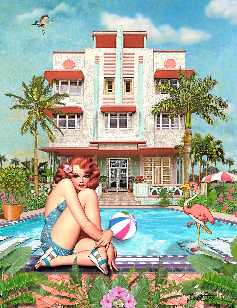 Everett resides in Miami Beach, Florida, where he finds inspiration in the sea, the tropical colors, and the Art Deco architecture. Everett Day was born in the Southern Californian town of Loma Linda and grew up in the nearby city of Riverside, where his father was a prominent Professor and Botanical Scientist at the University of California, Riverside. Everett's drawing and painting talents were apparent from an early age, as was his interest in gardens and ornamental plants. His father encouraged his interest in these fields, later suggesting that he combine his two endeavors through the study of Landscape Architecture. Everett went on to take his B.S. Degree in Landscape Architecture from California Polytechnic State University, Pomona, Calif. Another decisive input into his artistic development and personal evolution came from the meeting of Maharishi Mahesh Yogi the summer after graduating from University in 1974. Maharishi, the famous Indian teacher and guru of Vedic philosophy, brought to the world the technique of Transcendental Meditation, practiced to this day by millions of people worldwide, including many well known artists and celebrities such as the Beatles, film director David Lynch, Oprah, Ellen Degeneres, and Jennifer Lopez. Everett has delved into the mysteries of the inner experience of pure consciousness through his meditation practice and brings this value not only to his personal spiritual evolution but to inform his artistic expression with a calmness, wakefulness and the expression of joy through the use of bright clear colors. He is also a certified teacher of Transcendental Meditation and took his M.S. degree in the Science of Creative Intelligence at Maharishi European Research University in Seelisberg, Switzerland. Everett has continued over the years to practice Landscape and Interior Design internationally and more recently has put emphasis on visual arts through the development of his digital paintings and portraits. Everett Day is currently represented in the USA by Wentworth Galleries, (9 locations in the Southern US). Art Deco Welcome Center Gallery, Miami Beach, Florida, MAC Fine Art, Fort Lauderdale, Florida and Effusion Gallery, Miami, Florida.