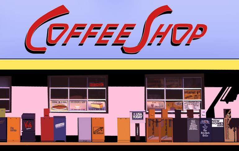 Before the internet age we read paper newspapers A digital impression of a Miami scene in the eighties of the last century.