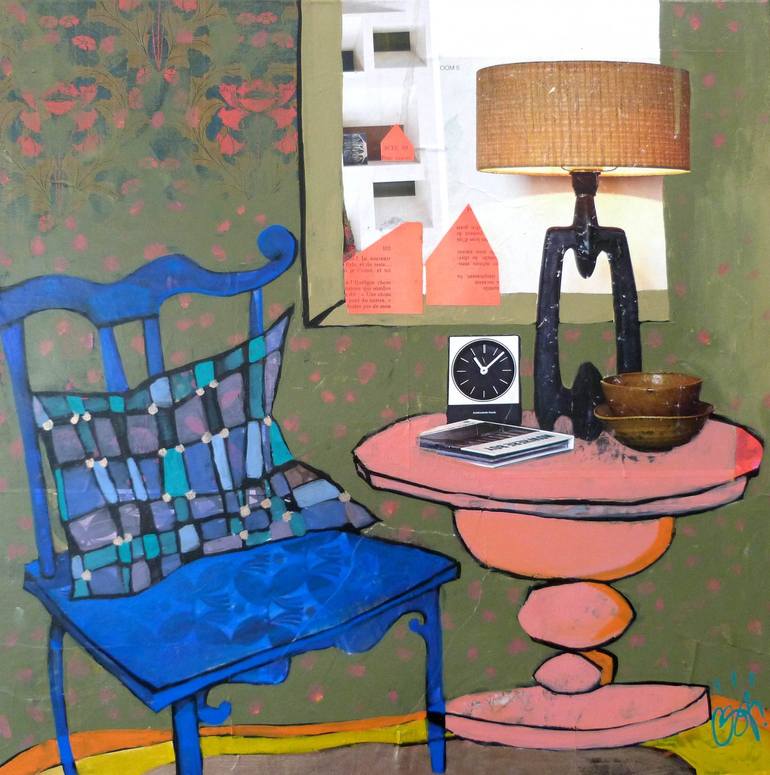 Canvas tribute to Chinese furniture from the Ming era but revisited especially in the "blue majorel" color used voluntarily. An interior that invites to sit, contemplate, meditate... Mixed media and collages on canvas. This art work is a unique piece, imagined and handmade by the artist in his stu...
