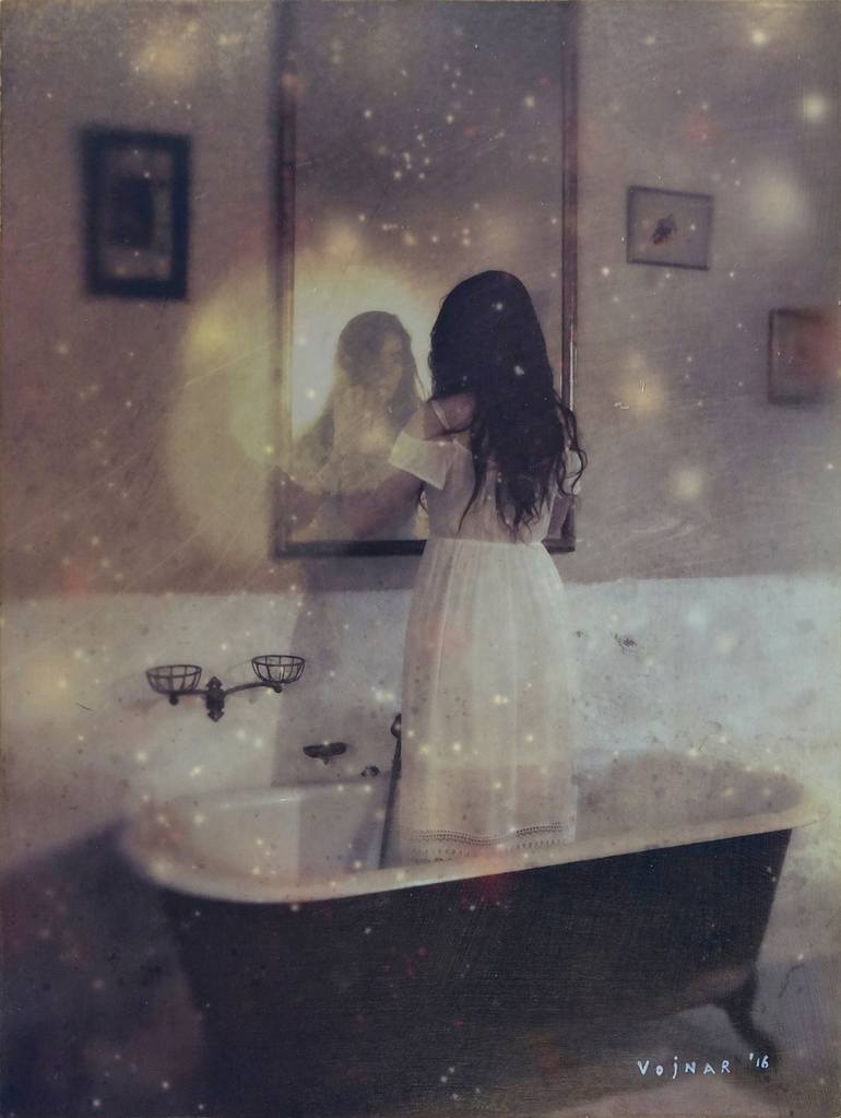 My studio is a tiny storefront, on the main street in small town, in south France. I sit in the back and make my pictures, In front I hang them on the wall and I open the door. People come in and ask what is it that I am creating. I respond, it’s anything you want it to be. No matter what, you will always view it through the prism of your own experience. ... And so they ask, ... but what is it for you? I answer, ... I don’t really know. It comes out this way on it’s own. It’s pushing itself through, like ... it needs to be done. I am just an instrument, channelling it down to the paper. To the paper, because it’s too late for me to learn to sculpt or play a violin. I can say just this little, it’s not about here and now. It’s about collisions of nostalgia, melancholy, of our sepia tinted past and ... yes, ... the future, with the cold, uninspiring present. I compose my pictures from elements, like a puzzle. I print them to different papers, collage to canvas, wood or other papers. I varnish them, I sandpaper them and varnish them again. I am making objects destined to live, and to be lived with.