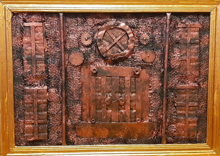 Three-dimensional image made using various modern materials: cardboard, metal, plastic, acrylic paint, textile. This 3D art is an interesting addition to the interior. The artwork awakens creative imagination, fantasy. A mysterious house, inside which incomprehensible, strange, magical events occur...