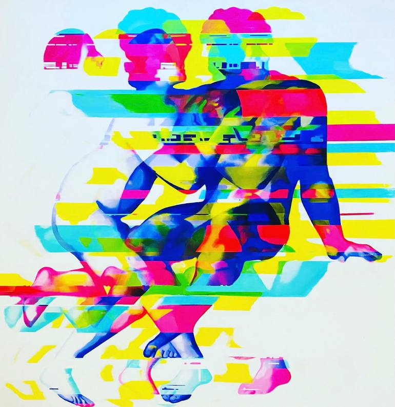 So, here’s my take on Adam and Eve—but make it modern. Instead of a forbidden fruit, imagine the glitches and chaos of contemporary love. The vibrant figures represent the undeniable pull between two souls, a connection so electric it transcends time. But then… there’s that third figure. Is it tempt...