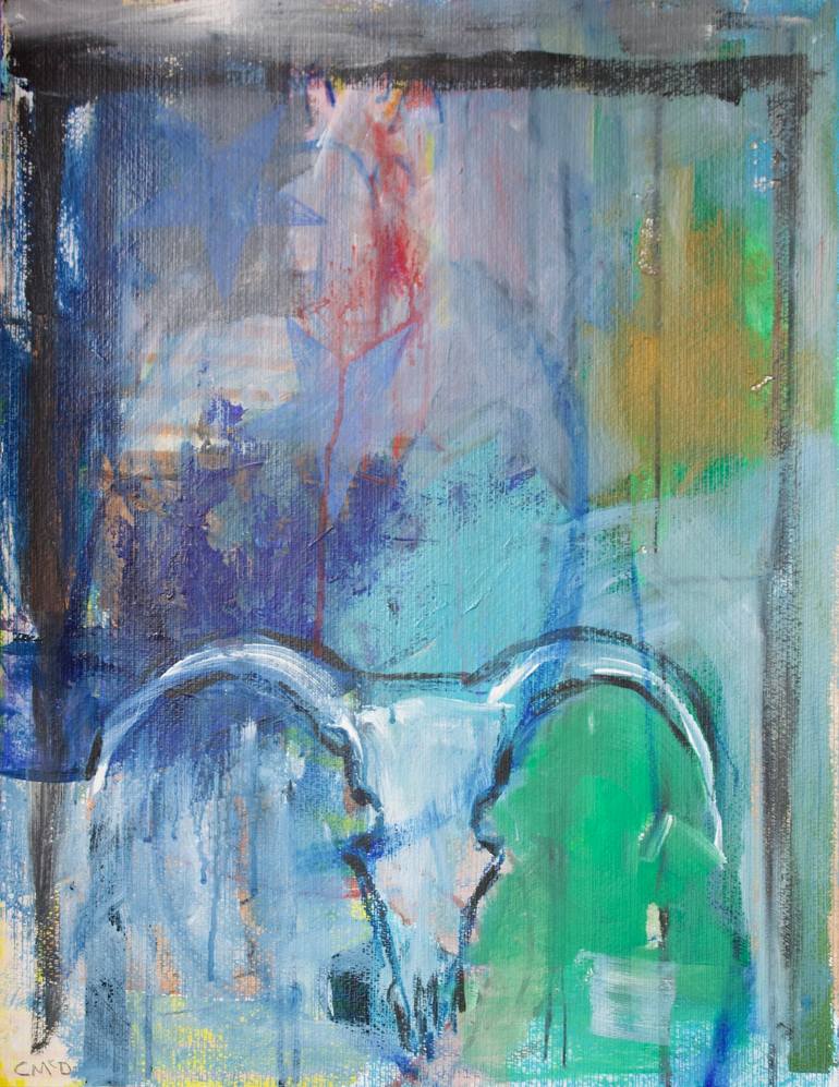 A very intriguing artwork, this painting is part of a series of works inspired by Greek mythology; Jason and the Golden Fleece. The fascination of skulls has been depicted in art for centuries and we are glad to be able to offer this body of work. It is mixed media; acrylic and crayon on paper, sold...