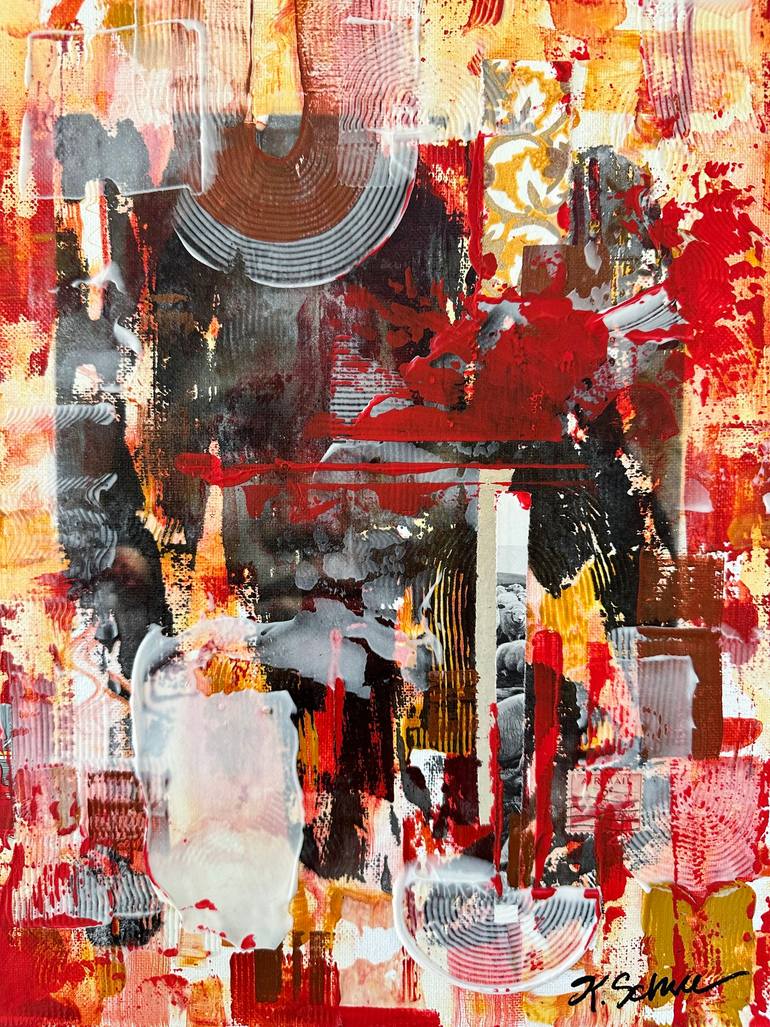 **Nebula** "Nebula" is an 11 x 14 inch mixed media piece that captivates the viewer with its complex layering and vibrant textures. This artwork is a compelling fusion of photo transfers, textured mediums, and an emotional interplay of shapes that evoke a sense of the cosmos. The rich palette of re...