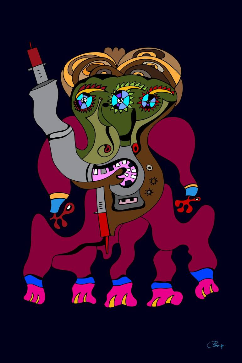 This illustration is part of the "Coronamonsters" series. It is first drawn on paper and then vectorized and colorized digitally. It can be printed any size because it is vector-based.
