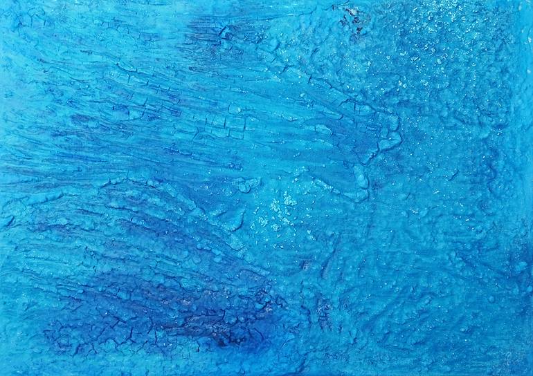 In Ocean's Secrets 2, an abstract underwater world unfolds, revealing relief structures such as hidden mountain ranges, deep gorges, and meandering sediments. The elevations and structures were created using four self-made modeling pastes – marble powder, Rügen chalk, and sand. Unlike in previous wo...
