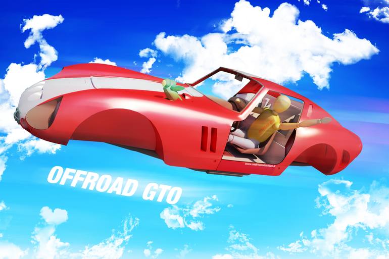 Fly with me ! Very Free road ! On the wings of fantasy ! Surreal and ironic image inspired by the famous car (Ferrari 250 GTO ) The technique is 3D computer graphics.