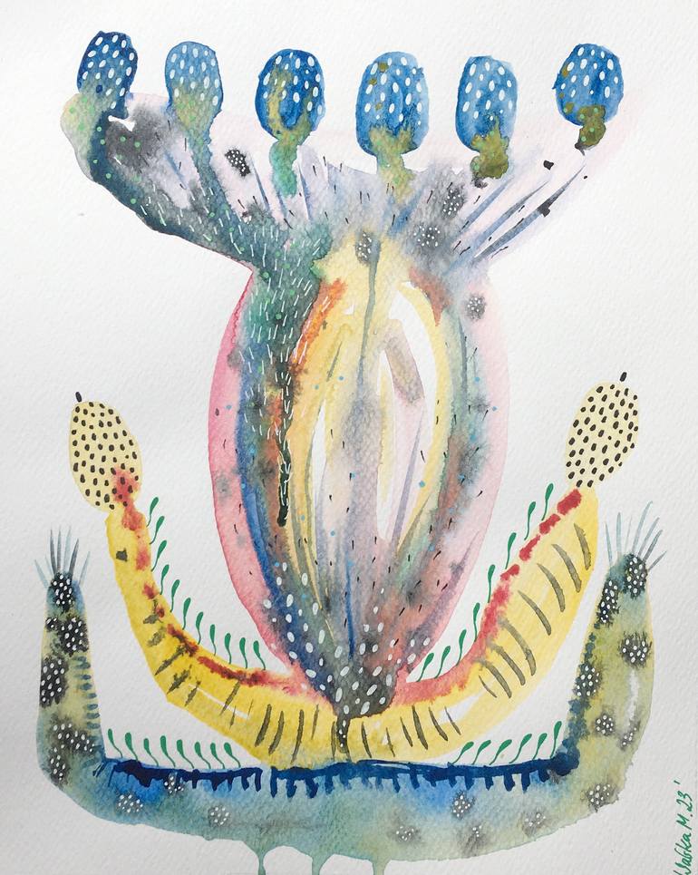 Colorful, juicy and very decorative abstraction from the Opuntia series. Work made in mixed technique: watercolor, ink, fineliners. Painting and illustration give an interesting effect. The work is perfect for most interiors. Work perfect for a gift. For lovers of abstraction, color and nature. Work...