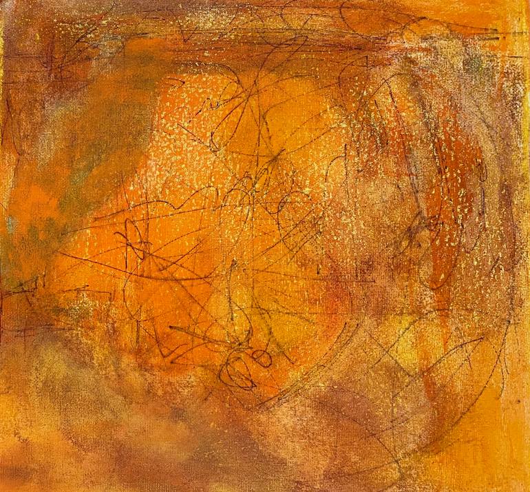 layered, abstract figures, can be viewed in multiple directions, complex This is part of a series. The edges are orange.