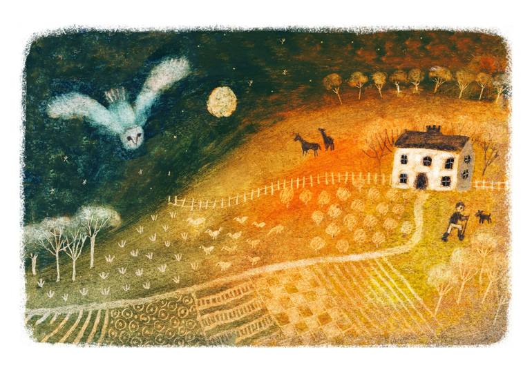 Greetings, I am an illustrator and artist with a special interest in folk art, folk music, and fairytales. I live in a village in West Norfolk between the Brecks and the Fens. I am an ordained Buddhist with the Triratna Community. In 2019 I graduated with distinction from the Cambridge School of Art, Children's Book Illustration MA. In March 2021 I signed a two book deal with Scallywag Press, & my first picture book as illustrator (The Tale of the Whale by Karen Swan) came out in March 2021, and I am presently working on the second. During the pandemic, I have experimented widely and have just begun to sell original works (firstly simply because there was an interest and people asked). I particualrly love working with wax and oil crayons, as well as experimenting with monoprint textures.