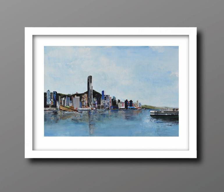 This artwork is based on the street scene of Victoria Harbour, Hong Kong. My subject matters are usually cityscapes and I love how every cities have its own architecture and unique style. I used a lot of newspaper & magazine in my artwork. I love how it brings layers to my art.