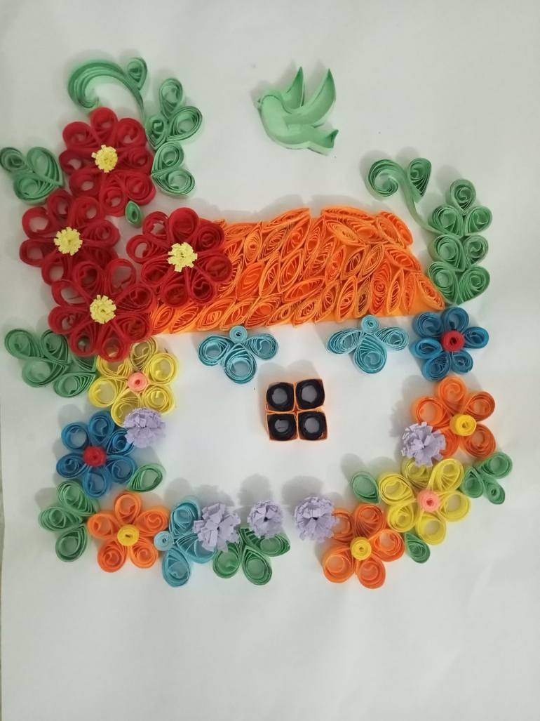 This art is made of colorful paper strips it is inspired by the artwork of yuliabrodsky this art work is known as paper art or quilling art. It takes 5hours to make this art work