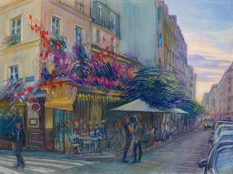 Point of view 48.8849744, 2.3373782 Inspired by Parisian beauty, starting in 2016 the artist is in the process of creating a series of etudes in “travel sketchbook” format. To this day there are more than 100 etudes, made in a mixed medium that combines aquarelle, gouache, colored, and pastel penci...