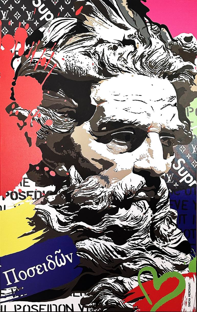 Poseidon is the Greek God of the sea, his face has power and triumph, a very positive acrylic art piece for positivity and greater success, perfect as a center focus to any room for a great conversation starter.