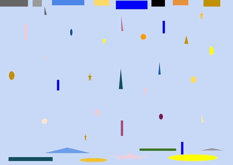 The drawings are created using a vector program. Are composed only from geometric shapes (square, rectangle, circle, stars, lines, triangles and ellipses) . I did choose this style becouse I have no talent for drawing with a brush, pastels, etc.. But I like mathematics (becouse it is international ...