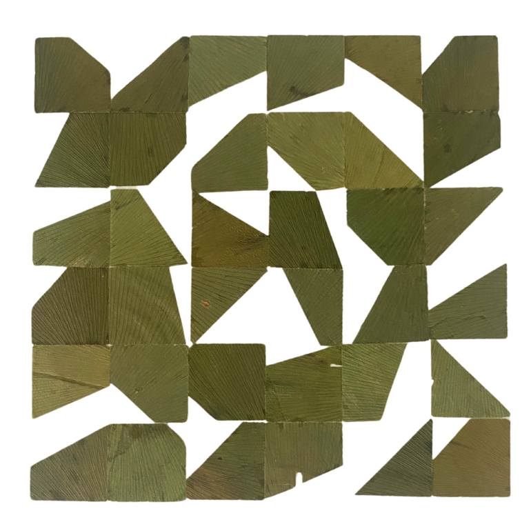 Preserved Ginkgo leaves, geometrically cut, represents a dialogue between the organic and the structured, between the ephemeral and the permanent. The leaf fragments of this tree, carefully selected and preserved, become the building blocks of a precise geometric composition. The delicacy of the lea...
