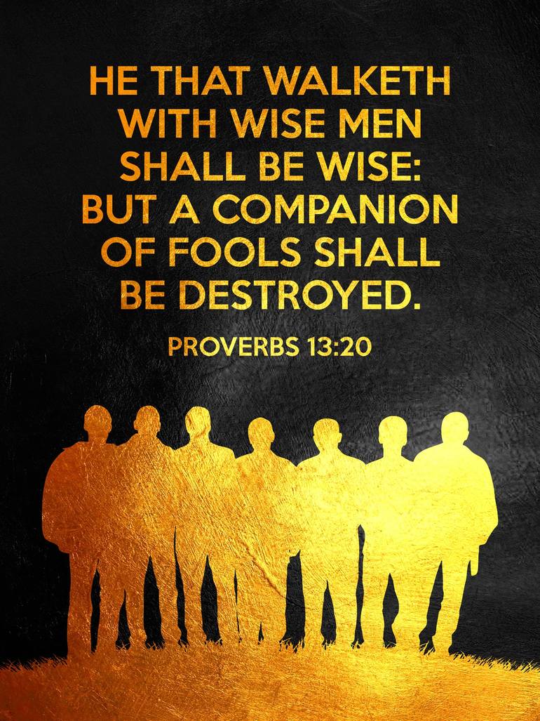 He that walketh with wise men shall be wise: but a companion of fools shall be destroyed.