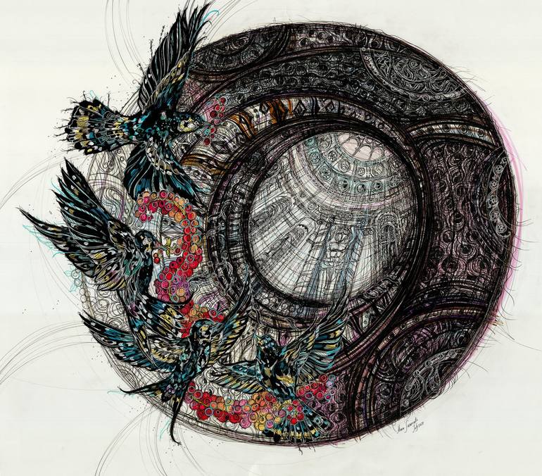 Please note, that this artwork will be shipped from Florida, USA. I love gothic architecture. Reims Cathedral is one of the most spectacular gothic cathedrals of the world. I created this artwork combining themes that I love - birds and sophisticated gothic architectural details. I used acrylic pain...