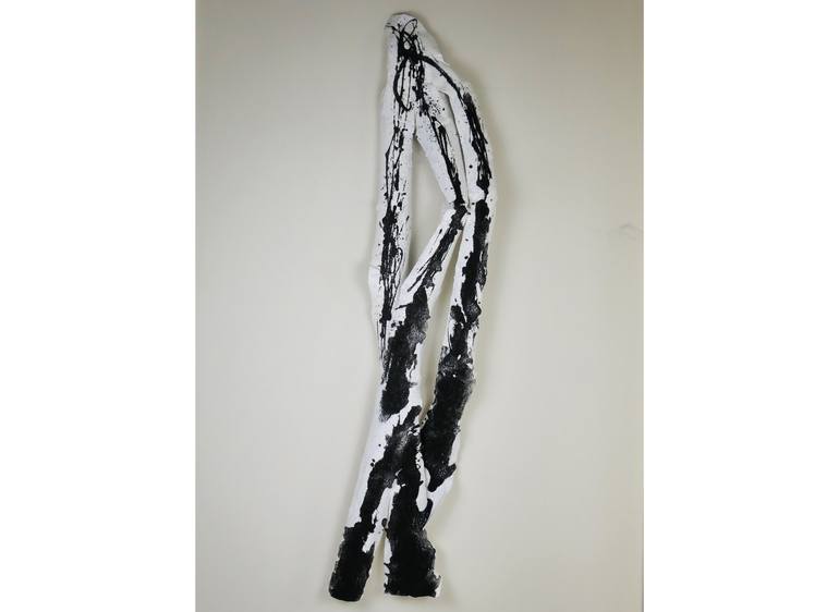 A wall sculpture with interwoven trunks to resemble roots, painted with sand and resin to seam like it is done with ink. This monochrome work evokes the rhythmic flows of the water, brush strokes and calligraphy with its grounding and reassuring, cooling presence.