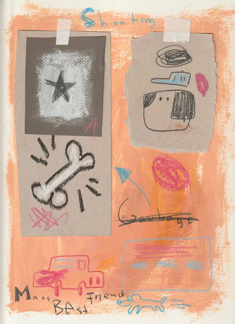 "Runaway Dog" • Mixed Media on Paper. • 9" X 12" • Robert Filiuta, 2023. •Signed on back.