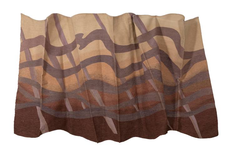 The tapestry is woven on a pre - faced cotton warp on a vertical loom with shaped colors in a pink - beige tonality of the wool and silk yarns.The plasticity of the tapestry is achieved through the pleating of the fabric and obtained by sewing it in the places previously ironed by the author.The art...