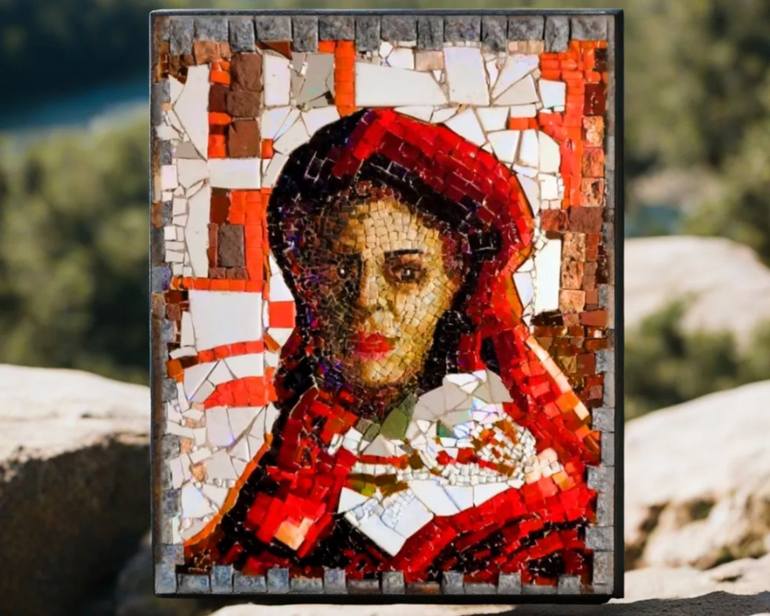 Description: Experience the allure of "Salome," a mesmerizing mosaic crafted with precision and adorned with semiprecious stones. This exquisite piece, measuring 48x58, showcases a harmonious blend of artistry and the inherent beauty of semiprecious stones. Inspiration: The inspiration for "Salome...