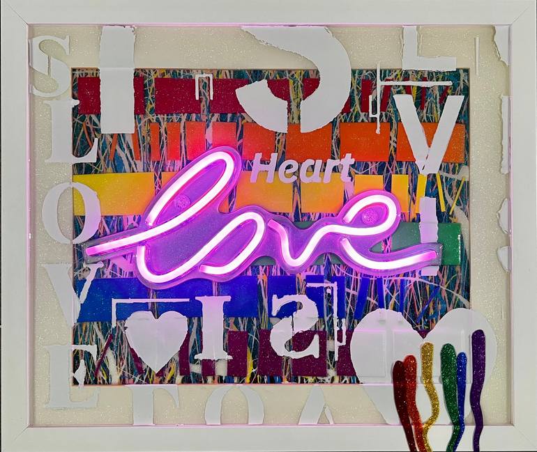 Love is Love. Is Love. Is Love. Is Love… etc… forever and ever, amen. *Please Note: The back of this work is painted hot pink and hand-signed by the artist.