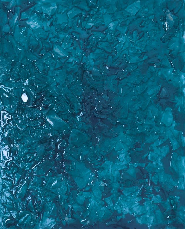 A friend of mine makes jewelry from sea glass, which I thought was beautiful. I hadn't seen glass like that, so she gave me some. I put it in a bag, smashed it with a hammer, and got perfectly sized pieces. Meanwhile, I'd been reading about the Mariana Trench, and even though there is no light or ox...