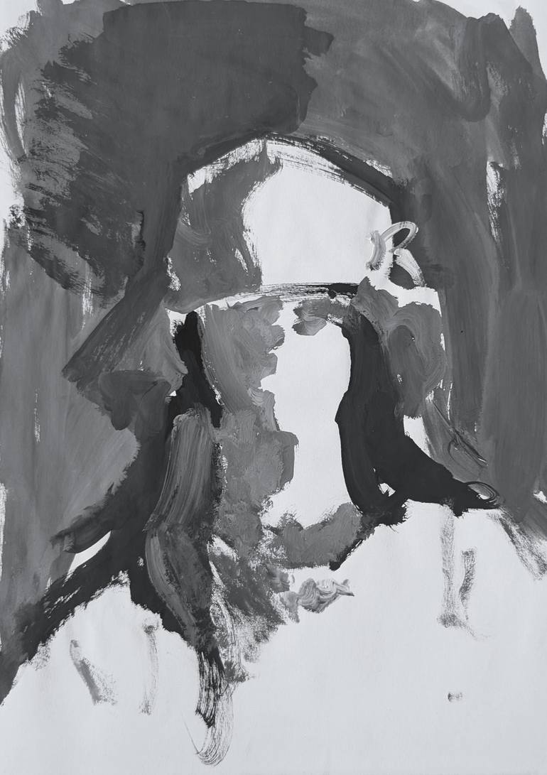 This is a self-portrait sketch. Gouashe on paper, framing needed.