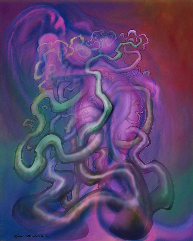 Fine Art - Fantasy Art - Fun Art Visual metaphor for knowledge, truth, experience, and faith, that are not just black and white, or even shades of grey, that rarely go in a straight line but twist in an interwoven rainbow of color.