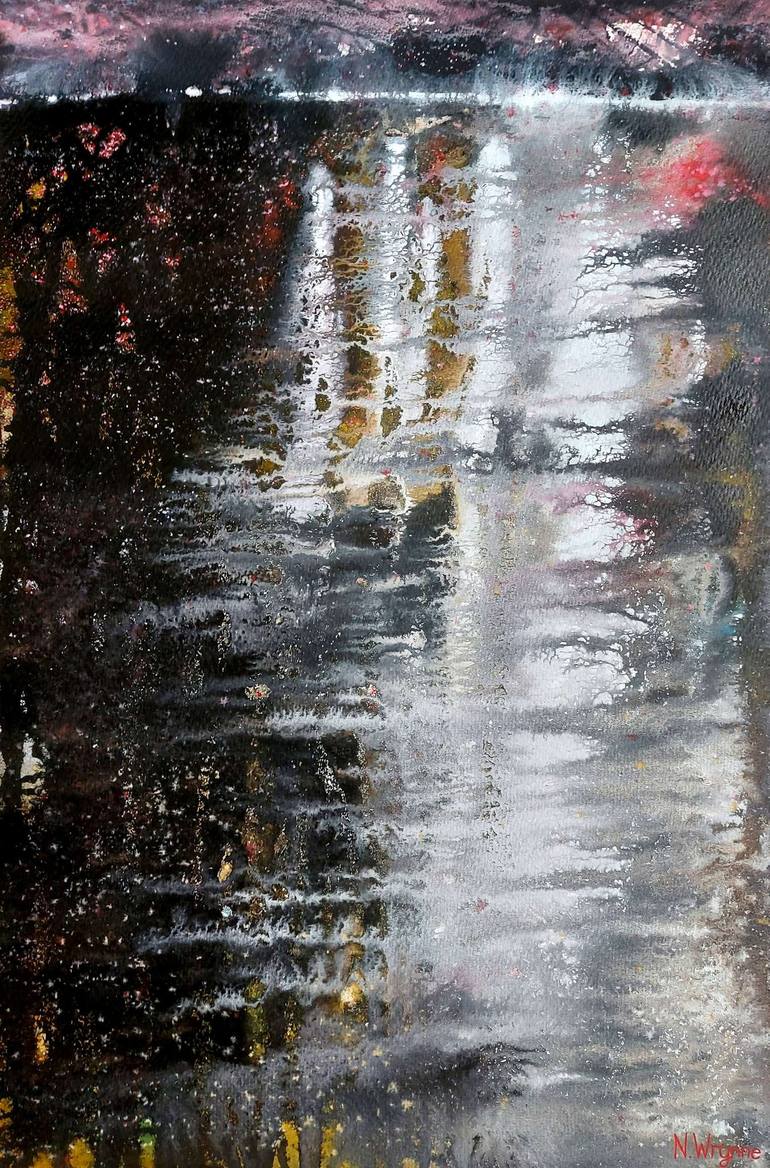 "Shady Sadness," an evocative artwork by artist Neil Wrynne. This abstract mixed media on paper is a serene journey into the interplay of light and shadow, inspired by tranquil, still waters and the ethereal beauty of a quiet lake. Measuring 58cm x 36cm, the piece's soothing palette of black, white,...