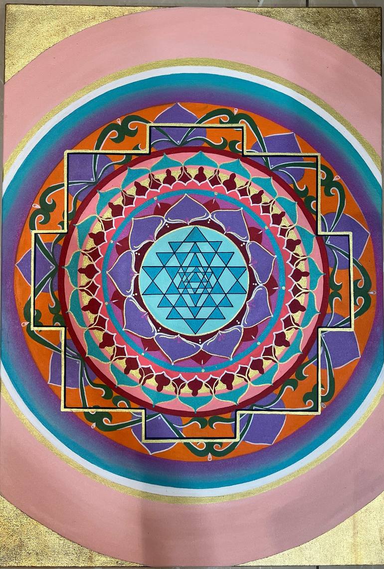SHRI YANTRA MANDALA- The Sri Yantra in its central portion contains nine triangles. Four of them point upward and represent the unmanifest power of the universe; all that is beyond our quotidian sense perceptions. They are thought of as being masculine and represent the masculine aspect of divinity.