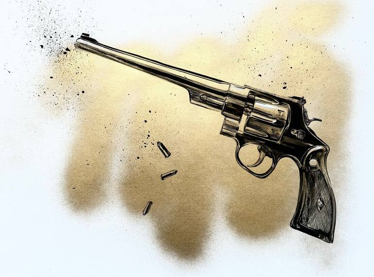 series Eternal Values depicts the classic Smith And Wesson revolver. It is impossible to imagine American pop culture without classic westerns. Weapons as a full-fledged hero of history. captivates with its rigor and expressiveness of lines. The black image on a gold background further emphasises t...