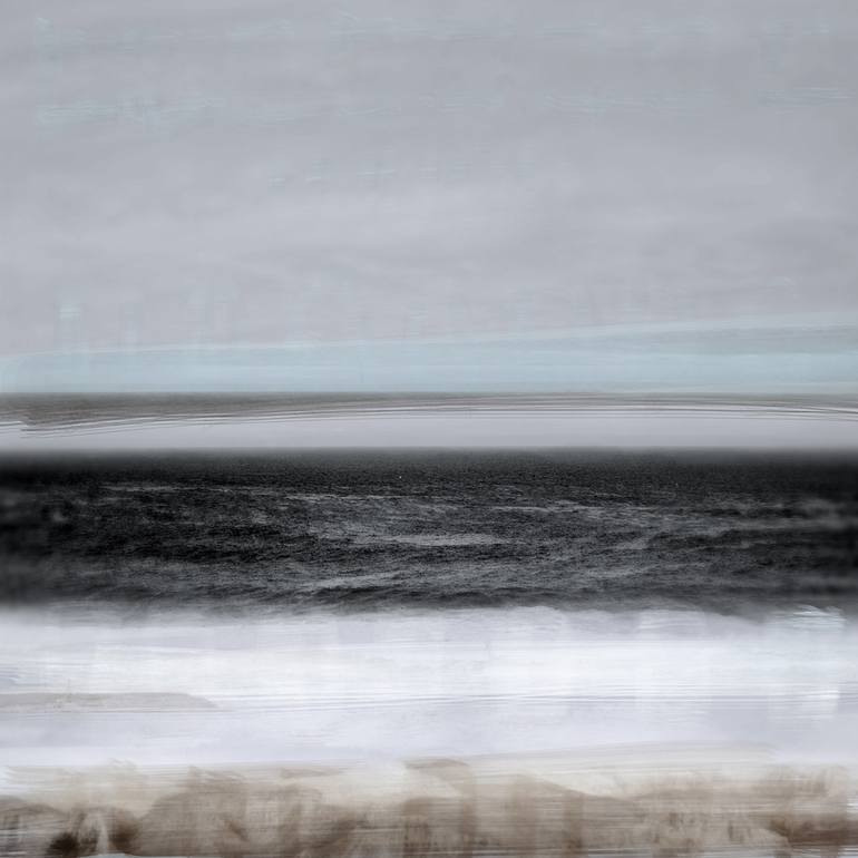 Sound of sea, shades of sea blue, foaming waters moving, warm brown sands looking across the Pacific ocean from the shores of California. The print was created mixing black and white photographic long exposures with paint, layered digitally to create the print on museum grade paper. Limited edition...