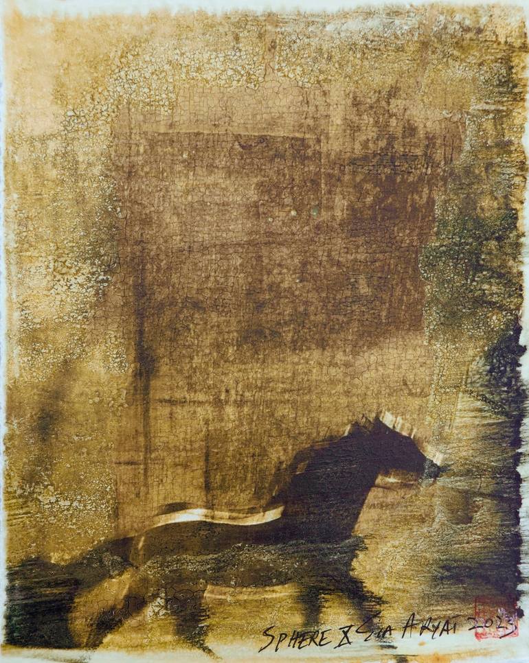 One-of-a-kind mixed media manipulated painted photographs on gold hand-painted paper The painting is 8X10” heavyweight paper and comes custom-framed in a 13X17X1.2” white shadow box Signed, dated, and stamped on the front ready to hang. Ship in a box