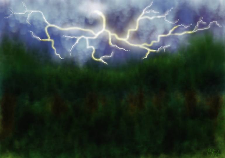 I'd like the storm, forest and nature so I painted the stormy landscape. The lightning is amazing and beautiful so i painted it.