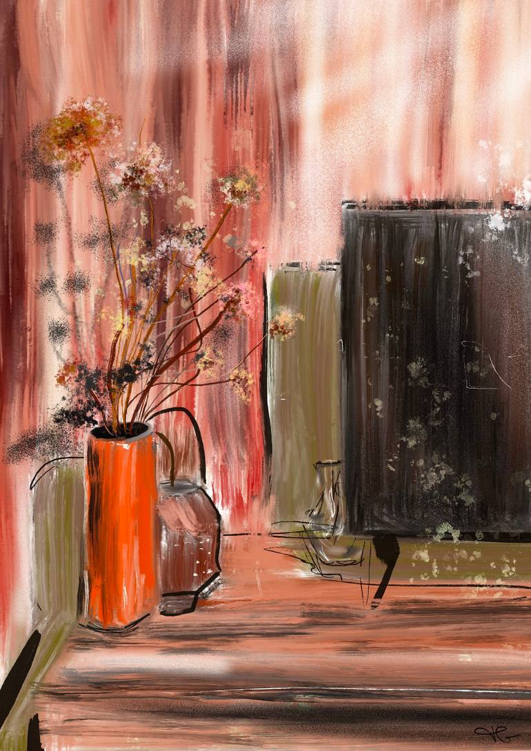 A digital painting of a sunny corner of the sitting room in our holiday home where we stopped once on our travels. Vaison la Romane. IPad drawing. 3/25 Limited Edition art print on high-quality lightly textured 100% cotton paper. A white border is added to the indicated dimensions to assist in fra...