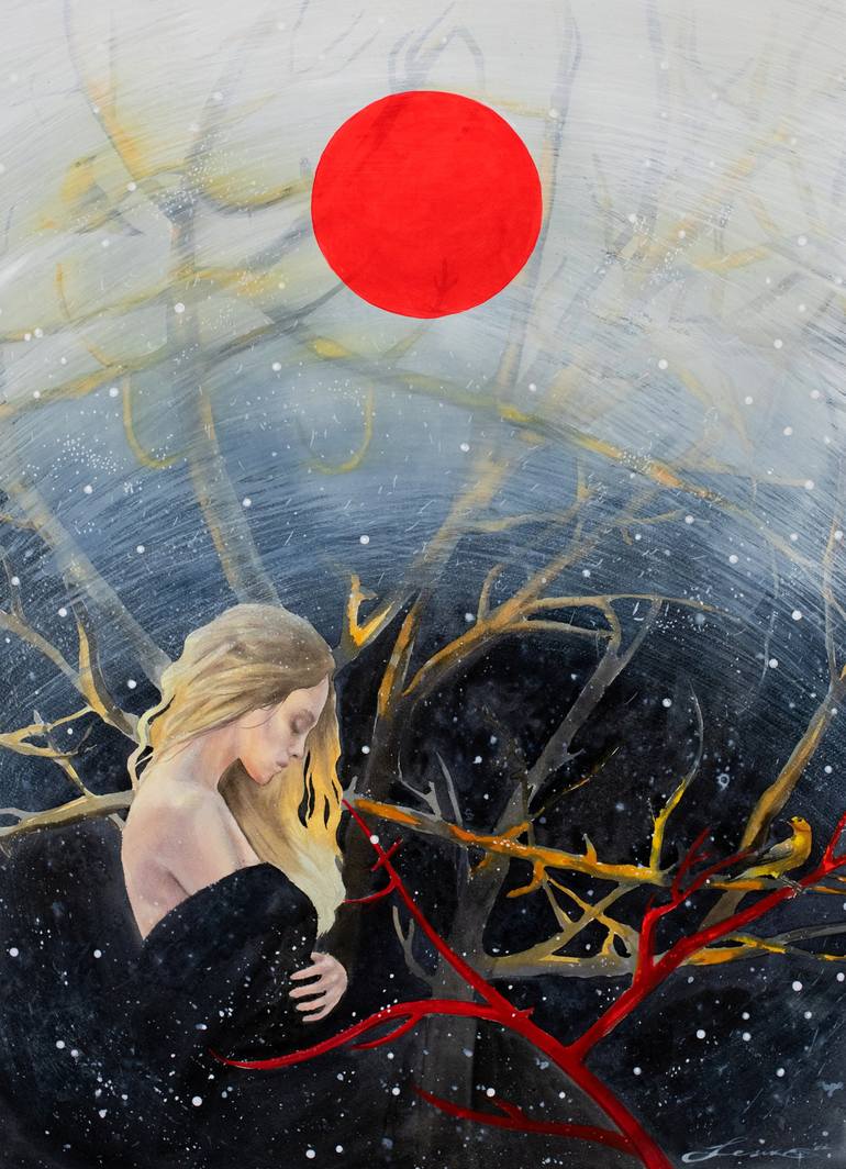 When a blizzard sweeps your soul and sadness fills your heart, remember, this is not for long, after sunset there will always be dawn. Just wait and the birds will sing in your heart again. In the center of the picture, I used the red sun, to enhance the effect of pain that the soul feels when gro...