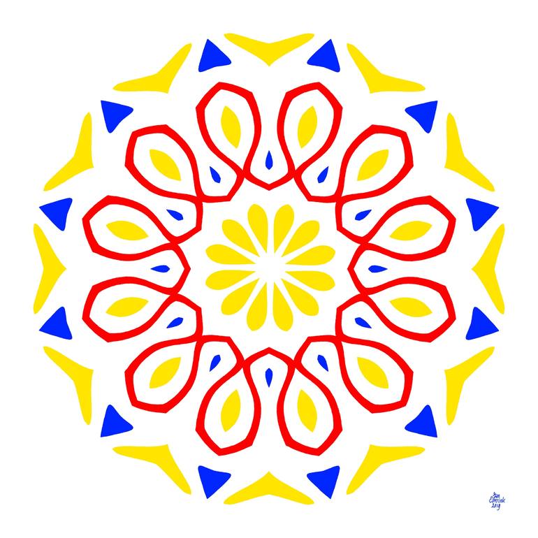 Digital painting in my series "Symmetric compositions". In these paintings I explore the possibilities of symmetry to achieve an aesthetic and harmonious effect. With symmetry I communicate in a joyful mood which goes beyond words.