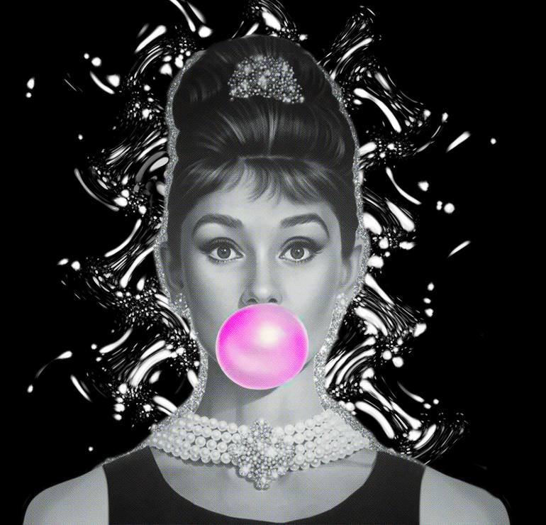 THE BUBBLE GUM OF AUDREY | POP ART Digital manipulation | popart.world 2019 Audrey Hepburn, the diva, the icon. This time, formally informal.