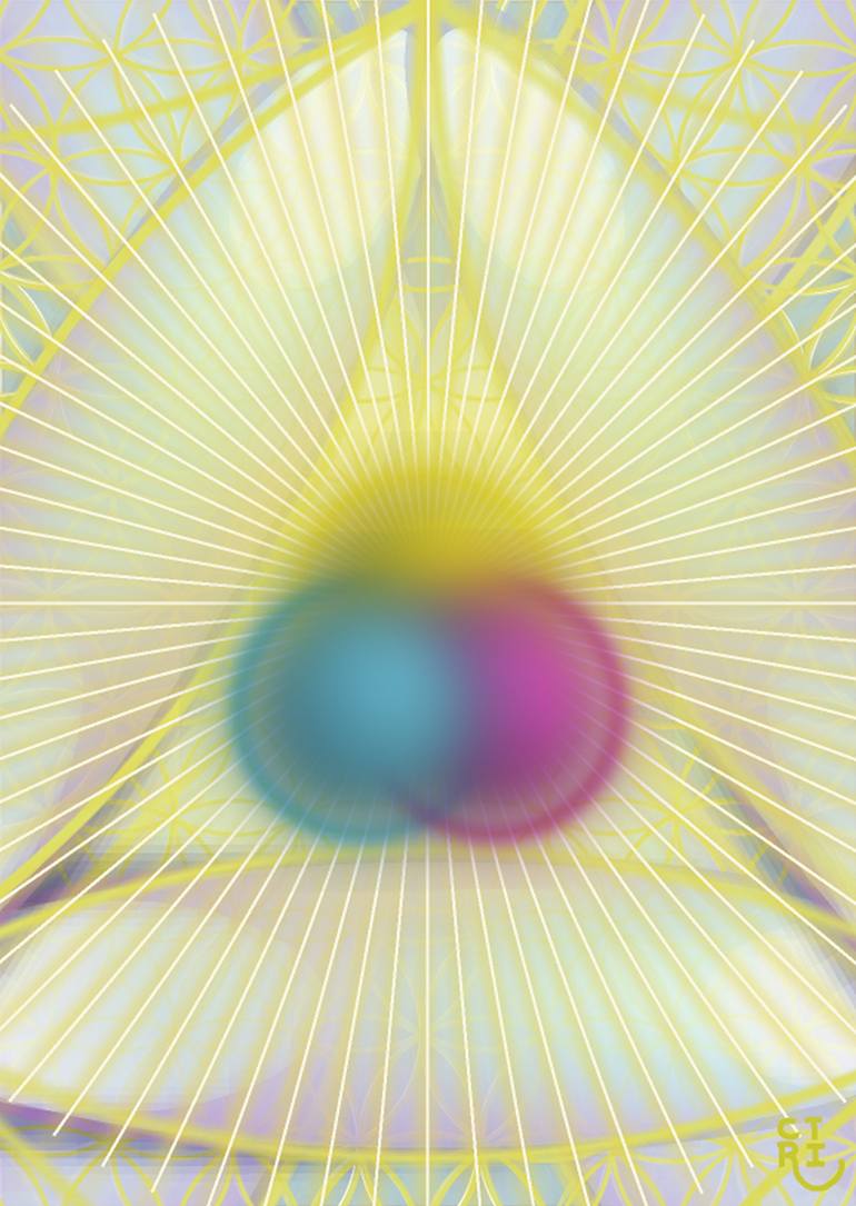 This Artwork represents the visualization of the Love I carry in my Heart. It is a Mystic vision received in deep Meditation of the Triune state of Consciousness within the Heart Chakra. The composition is based on several layers of the overlaying Matrix from The Flower Of life in different sizes f...