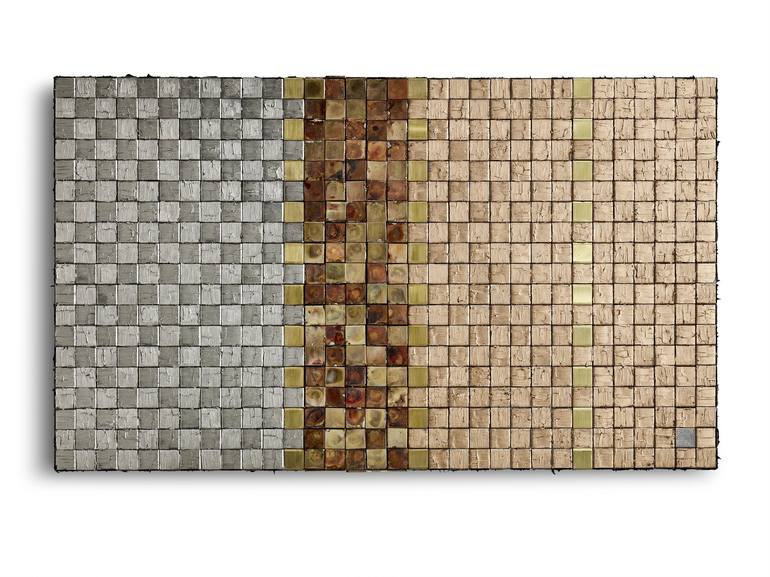 My pictures are created from embossed and then intertwined metal strips. I process different metals, which I also combine with each other. A 3-dimensional body is created using a special edging process. The stripe width can vary. I have registered the type of embossing and braiding with the Euro...