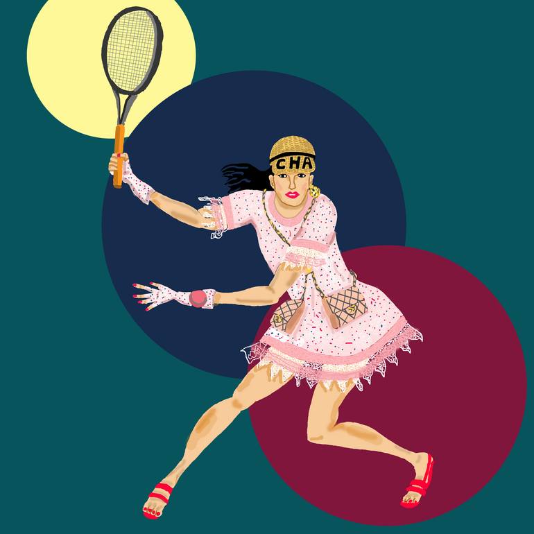 Ongoing project of Women/Fashion/Action, I created this work the model playing tennis wearing Chanel outfit shortly before Carl Lagerfeld's passing.