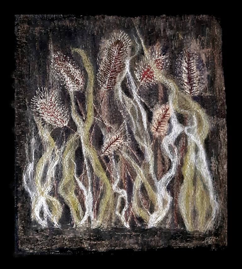 The decorative fabric artwork is made in mixed media: first, I painted the background on cotton with acrylic paints, then sewed viscose and woolen fibers on the background and embroidered spikelets and grass stalks with free machine embroidery (not digital, but with my own hands). The stretcher wa...