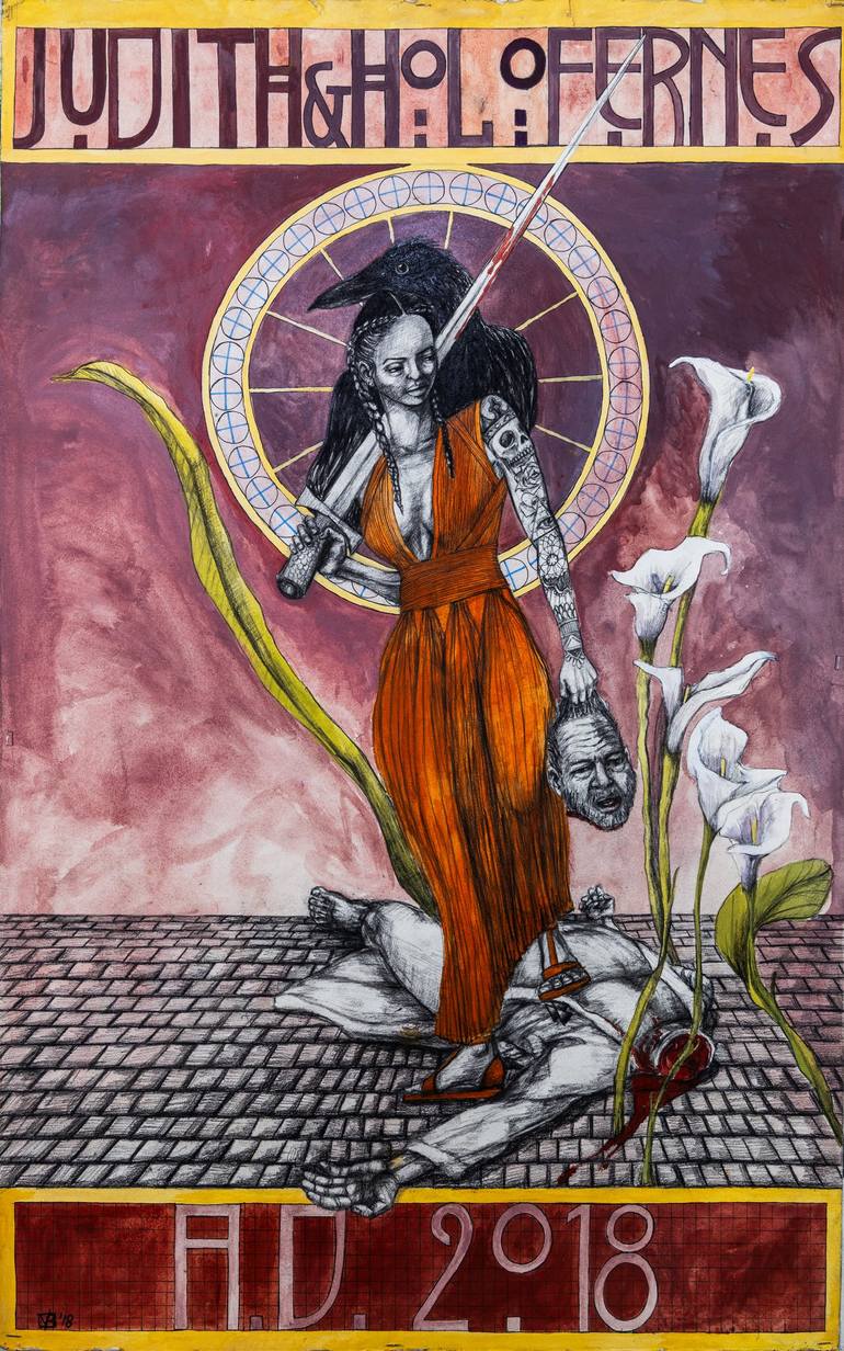 In The Head of Harvey, the biblical story of Judith and Holofernes is a blistering feminist iconography. The central figure—tattooed, calm, and triumphant—stands barefoot in a pool of blood, holding the severed head of Harvey Weinstein, the disgraced Hollywood mogul whose exposure became a turning...
