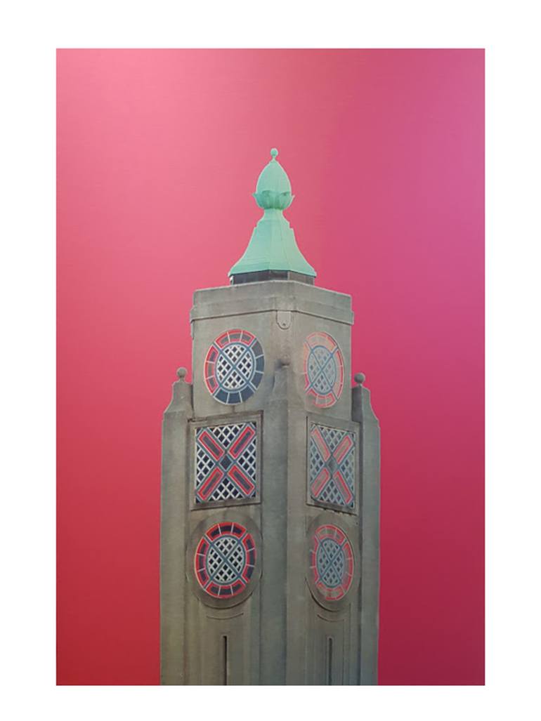 The Oxo Tower on London's South Bank, one of my favourite buildings in the world. Built in the 1900s - it's a beautiful mix of concrete and neon. I love its shapes, lines and colours. This image is created from an original photograph and printed on brushed aluminium, which brings out the vivid pink...
