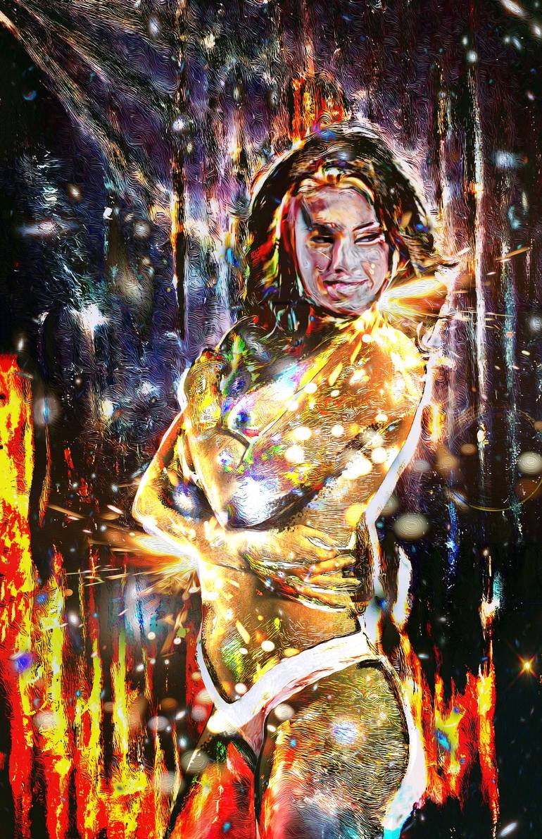 The digital creation is from a black and white photo I took in 2016 from a pin-up portrait class. I came across it while cleaning out my closet. I always enjoyed the smile and the sideways glance on the model. However, the focus was off, coupled with motion blur. So the photo went into the discard p...